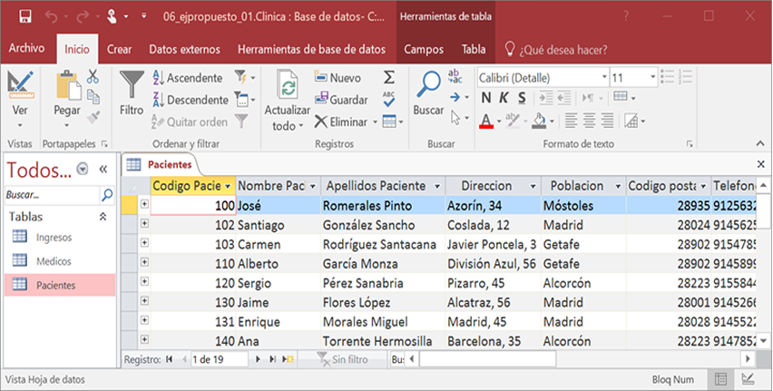 En la imagen anterior se ve la pestaña INICIO.