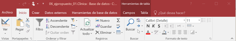 La barra de acceso rápido contiene las operaciones más habituales de Access como Guardar