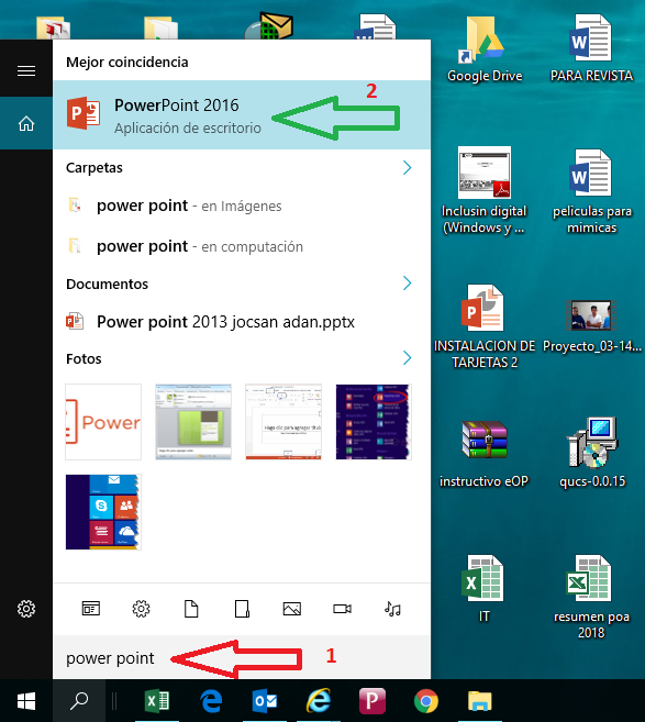 - Redactar "Power Point" (Como lo indica la flecha con el numero 1)